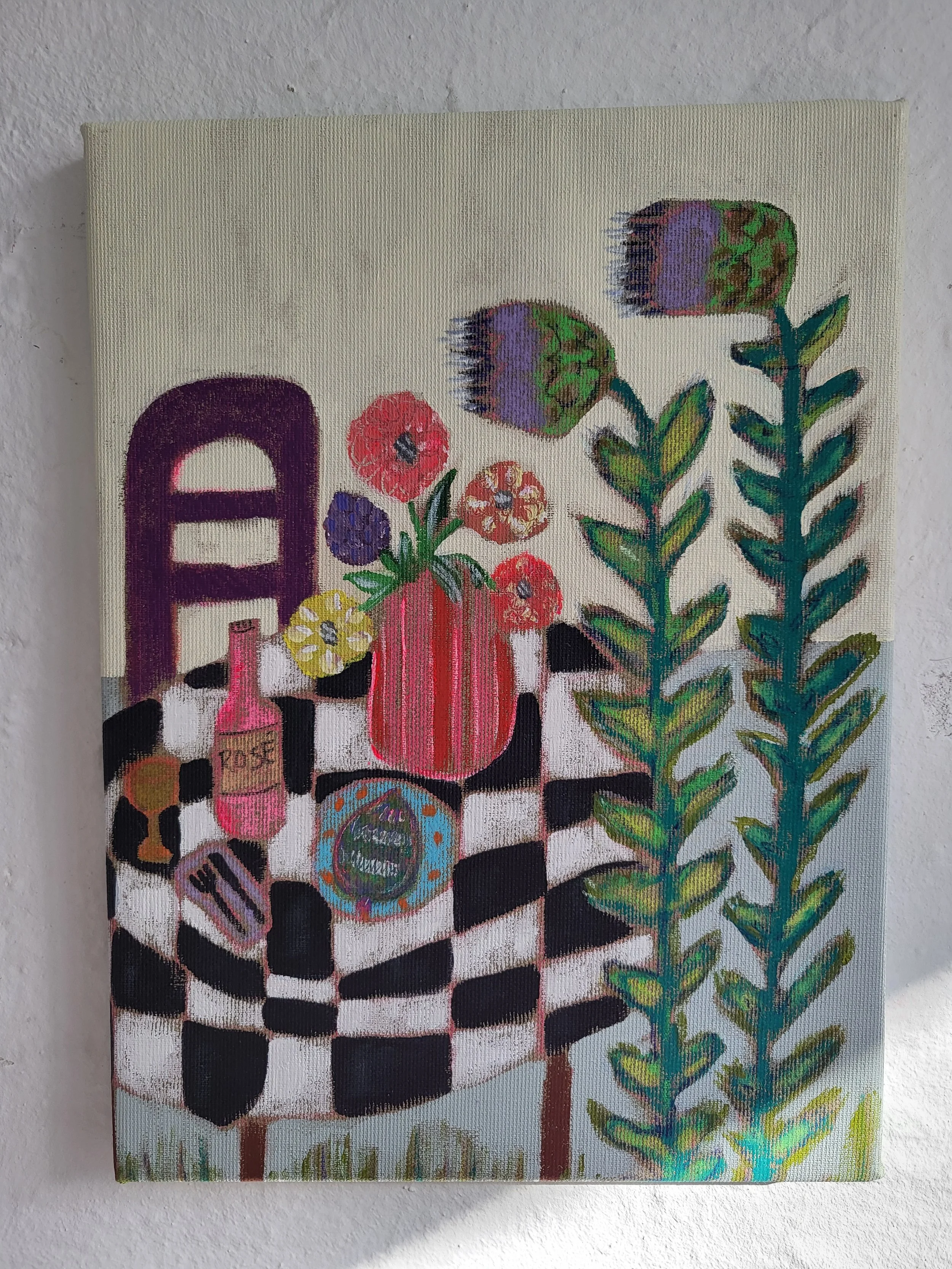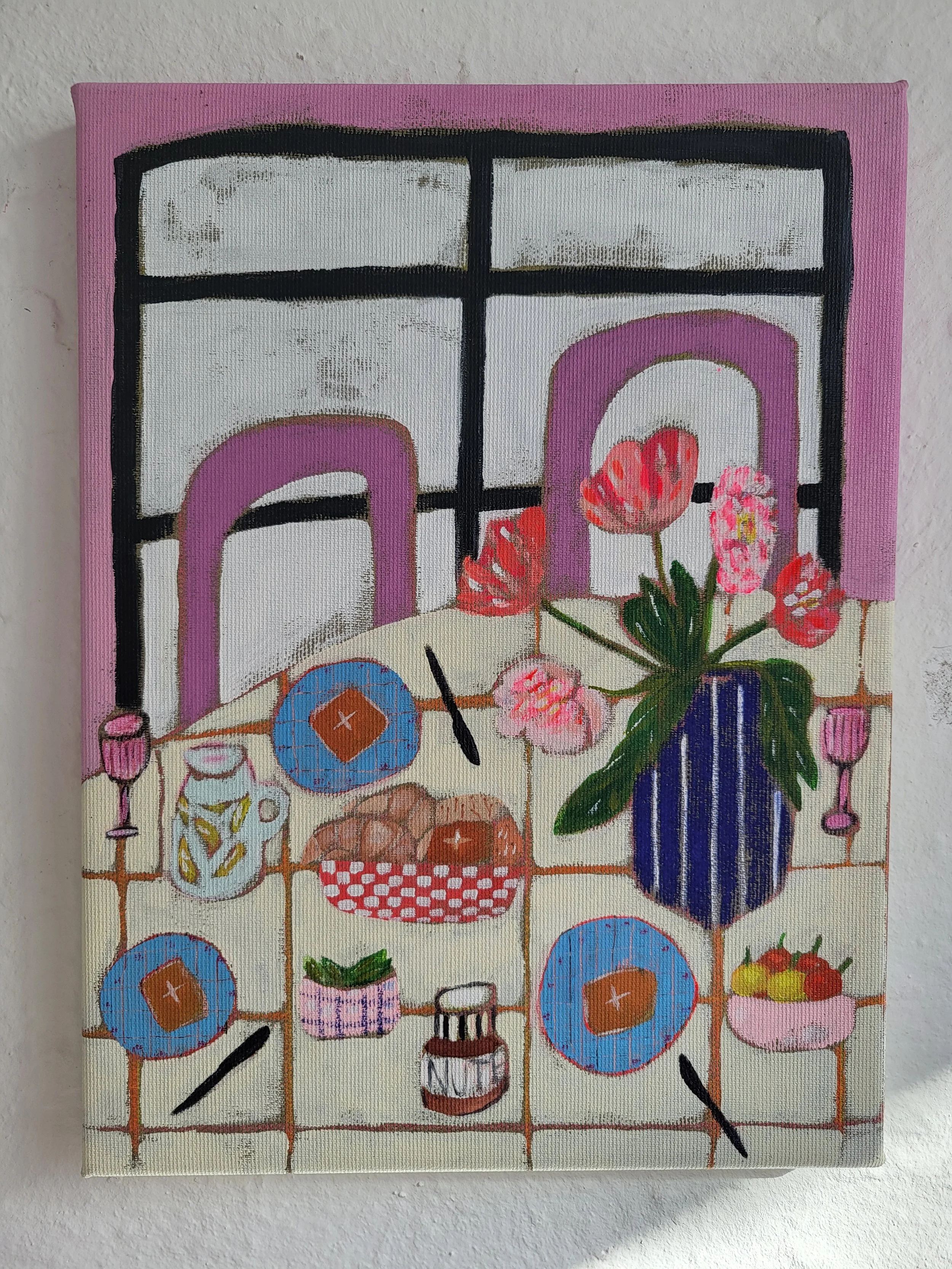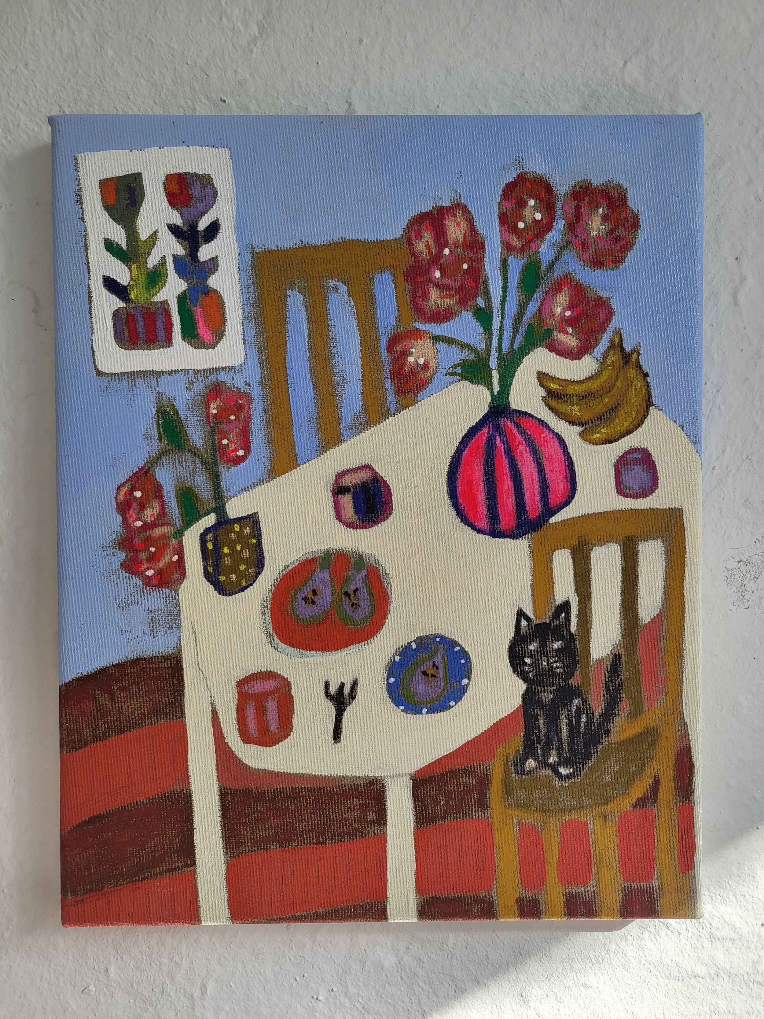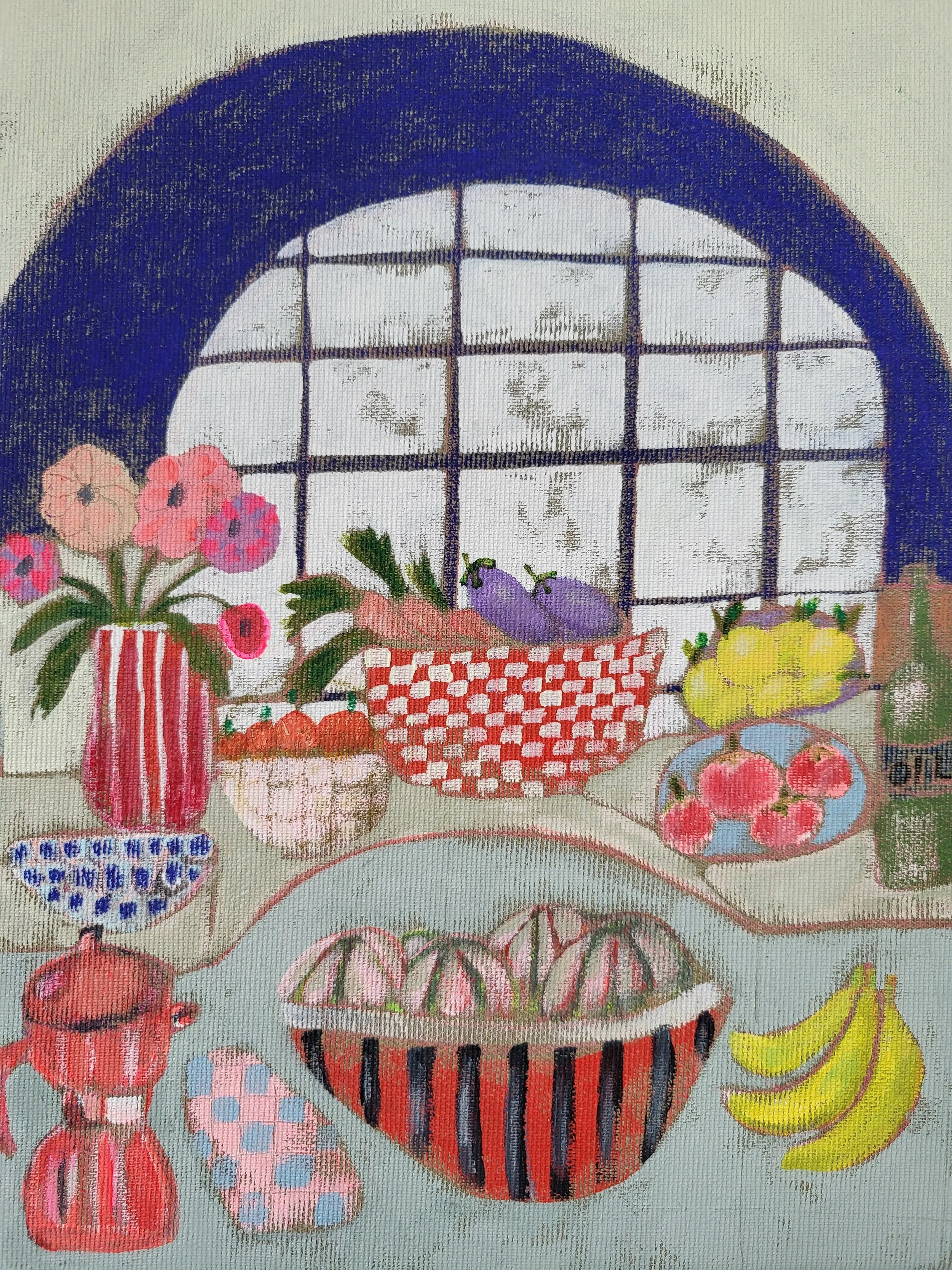 Worth the Wait $400.00 Sold Out Sunday Morning $250.00 Rita The Cat $250.00 Wool Gray Sky $550.00 Pressed Flowers Between the Pages $450.00 Blue Vase with Tart $250.00 Sold Out Dinner in an Unexpectedly Beautiful Place $250.00 Sold Out Wine with Madeleine $250.00 Sold Out Mimi's Window with Melon $250.00 Sold Out Closer to the Sea $1,050.00 Sold Out Razzle-Dazzle $1,150.00 Sold Out It Takes Time to Dream $1,150.00 Sold Out The Poetry You Make $350.00 Sold Out A Belt with a Brass Snake $400.00 Sold Out Like a Song $340.00 Sold Out Fall Into Me $340.00
